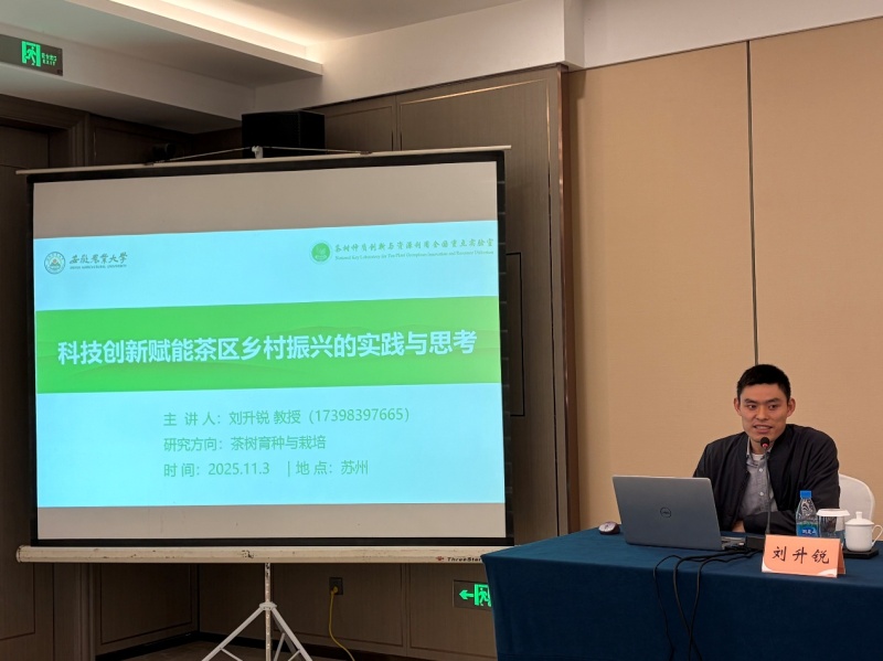在技術培訓環節,劉升銳教授圍繞《科技創新賦能茶區鄉村振興的實踐與思考》進行了精彩授課。劉教授結合實際案例,深入淺出地分析了科技創新在茶產業升級、產業鏈延伸以及鄉村振興中的核心驅動作用,為參會者帶來了前沿的理論知識和寶貴的實踐啟示,現場反響熱烈。