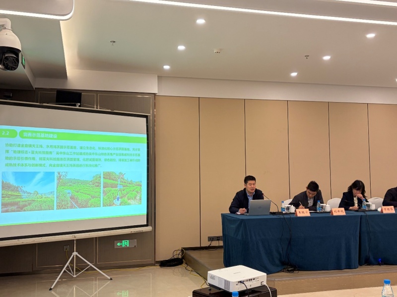 項目主持人王毓寧研究員就項目整體情況進行了系統匯報。他從產業現狀與需求、實施地點及規模、主要實施內容、工作站運行情況等方面進行了詳細闡述,明確了項目以茶葉全產業鏈發展為核心,重點開展化肥減量增效、綠色防控、茶葉深加工、品質安全監測、全程質量溯源五大技術集成推廣應用。通過科技賦能,為洞庭山碧螺春茶產業的可持續發展提供技術支撐。