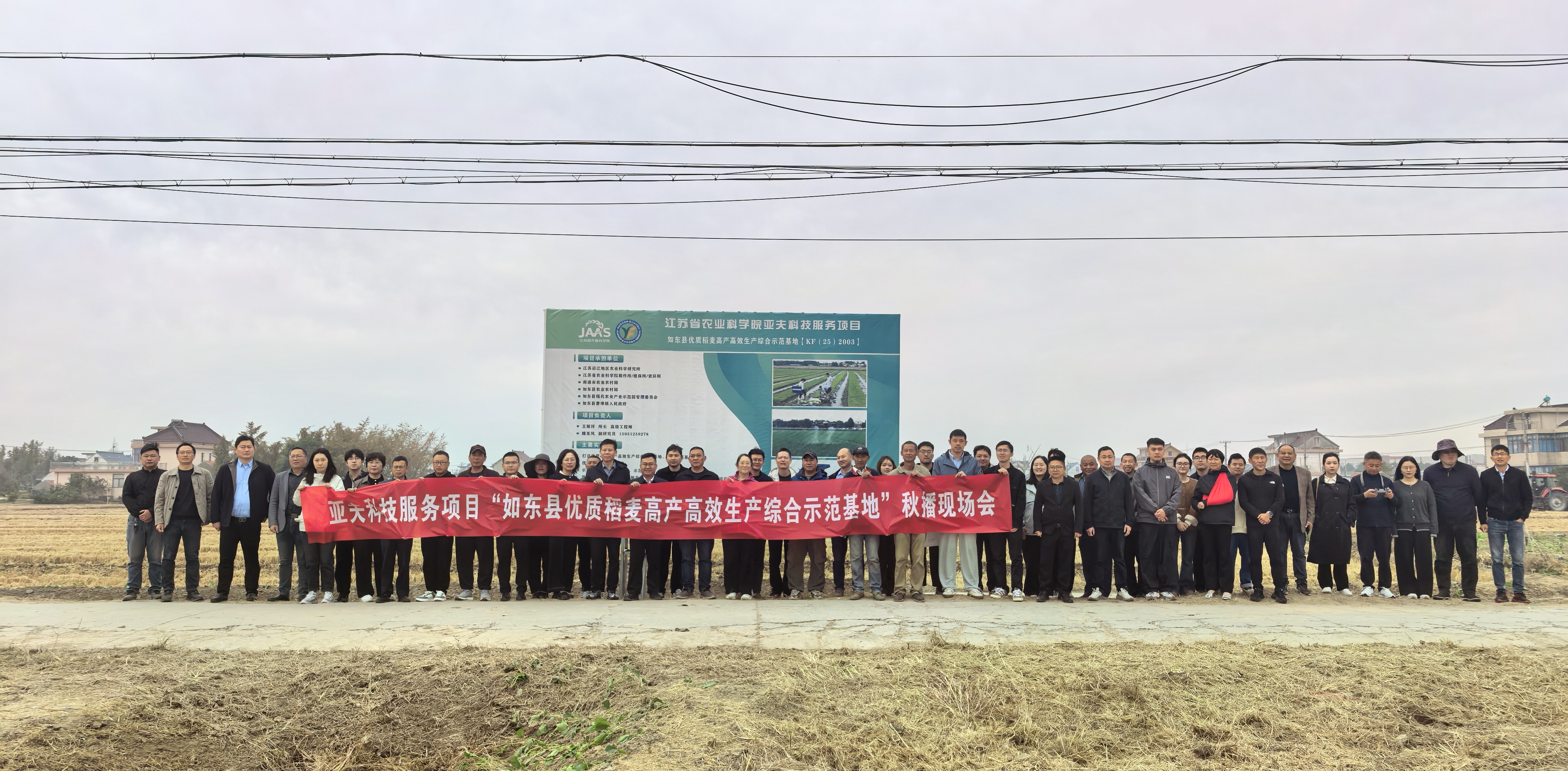 11月4日,亞夫科技服務項目“如東縣優質稻麥高產高效生產綜合示范基地”小麥秋播現場會,在如東縣曹埠鎮如東蘇新家庭農場順利召開。此次活動由江蘇沿江地區農業科學研究所資源與環境研究室與南通市農機化技術推廣中心、南通市作物栽培技術指導站聯合舉辦,現場會通過“理論講解+實操演示”的模式,集中展示小麥前沿播種技術與裝備,推動農機農藝深度融合,為當地小麥生產機械化、智能化升級注入動能,筑牢糧食安全根基。市及縣(市、區)農機推廣站(中心)、作物栽培指導站技術人員,部分種植大戶及項目組成員共60余人參會。